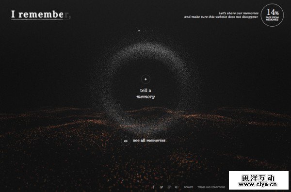 网站是为一个项目而建立,旨在提高人们对于阿尔茨海默氏症的了解,网站视觉设计非常独特,用户可以同这个网站进行许多有趣的交互。网站深沉的色调正象征这种令人失去记忆的病症给患者的压力,其中的微光则象征着“希望的微光”。