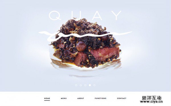 在这里,极简设计从未如此美丽。Quay餐厅的网站使用漂亮的大图背景吸引用户,全屏式的幻灯片式展示堪称完美,加载迅速,并且切换的节奏都控制得非常好,网站导航栏被挪到屏幕底部,这使得网站的浏览体验更好。随着页面滚动,导航栏会自然得移动到页面顶部。网站设计层次清晰,也保持着一定的复杂度。
