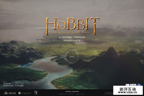 这是一个令人印象深刻的网站,一方面是因为网站是以近2年特别火爆的电影《霍比特人》为主题,另一方面是因为网站借助大量的静态图片和动态图像来创建出游戏般的交互体验。