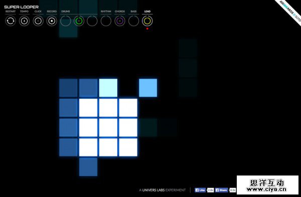 这是个有趣的游戏,你可以在此创建音乐并且可视化地展现出来,整个使用体验令人上瘾。鲜艳的色彩与黑色的背景令网站在视觉上更富有魅力。