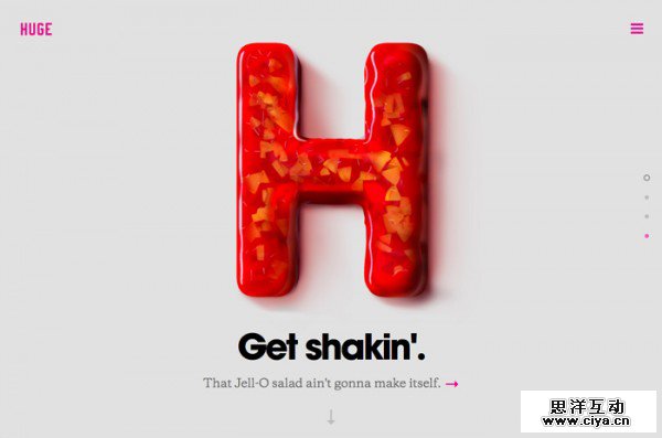 这个网站设计的简约,也设计的恰到好处。不论是品牌设计还是空间和版式设计,Huge公司的网站都做的非常不错。网站借助视差滚动完美地创造出“页面”的感觉,不同的页面呈现不同的元素,整饬而清晰。