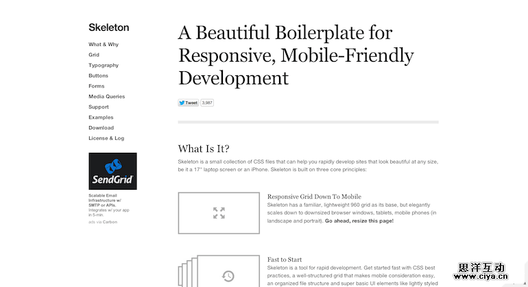 Skeleton是一款小型的CSS合集,可以帮你快速开发任何尺寸下都可以完美展示的站点。因此,这是一款值得收藏的前端工具。