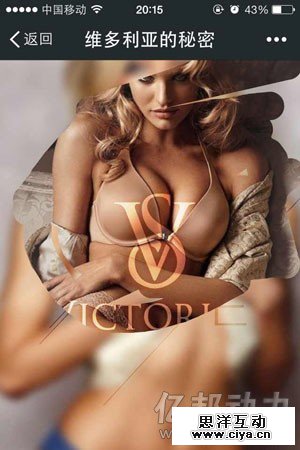 “互动体验派”的大师姐是内衣品牌维多利亚的秘密,她出师早,名声也响,成名技为“摩擦有惊喜”。7月初为预热七夕,维秘上线了一款形式炫酷的轻应用:首页是一幅经过雾化处理的照片,用户只需用手指摩擦屏幕,就会有一位性感女郎浮出水面,继续浏览下去则是品牌介绍,最后到达内衣抢购页面。