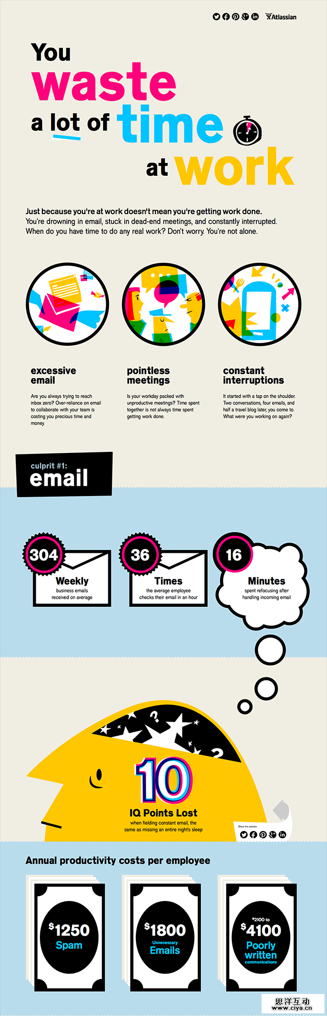 .图片的吸引力总是强过文字,但清晰的粗体大字也能起到类似的效果。Atlassian的网站并没有因为首屏只有文字而降低趣味性,文字内容的颜色以鲜亮为主,排列流向也同时突出了网站的逻辑层次。