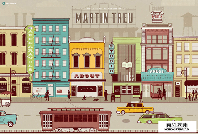 .这样的网站首页一定能让用户欲罢不能。手绘风格的网页设计可能会让你觉得不实用,与其他风格之间的搭配会显得格格不入,但看了下面的案例之后,你会发现真的多虑了。设计师将导航元素也融入了手绘画面中,功能和场景之间毫无违和感,让用户仿佛置身于网页插画中。