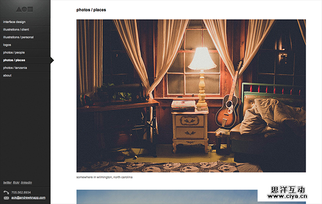 有时候,图片是决定网站风格定位的很大因素,如下案例所示,只需要加入一张充满文艺气息的图片就能自然的提升整个网页的档次。这类型的网页设计一般都没有什么极具创意的布局排版,功能内容也做的尽量简单,就为了衬托这一份独特的极简。