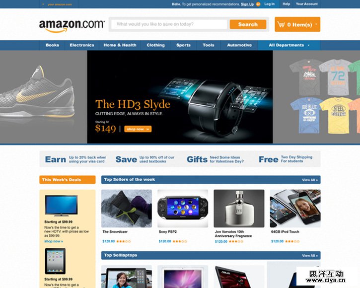 Cleveland 想出了3种不同的重设计方案,给人的感受截然不同,也提升了Amazon主页的可用性。
