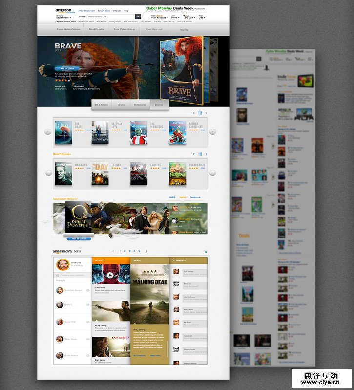 设计师Gibson针对Amazon的视频页面进行了重新设计。干净清爽的页面看起来非常吸引人,比起现在的设计更加现代,也加入了响应式设计的元素。