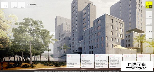 这是一个独特的建筑类网站,漂亮的建筑与风景自然而然地作为背景而存在,它独特的地方在于,网站的导航和内容都是用大大小小的方块构成,,分布在网站的上下左右,非常有趣。