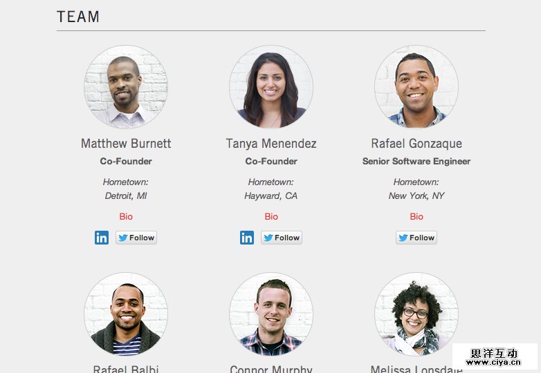 越来越多的欧美网站开始在团队页面中标注设计师的家乡,声明这个站点的“故乡”。在足球领域,球队的球员介绍页面上,大家都喜欢“自豪地介绍球员来自……”,也正是这种“基于位置”的信息强化了整个队伍的归属感和凝聚力。同理,设计师们的“故乡”信息也有着同样的作用。