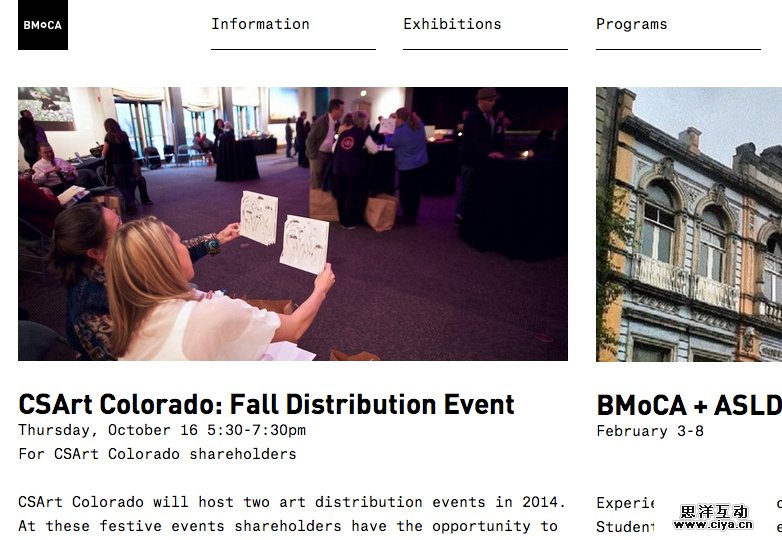 在Berger & Föhr 为 Boulder当代艺术博物馆的网站进行重新设计的时候,栅格系统的“内衣”作用是如此的鲜明。当你浏览网页的时候,图片、文字段落、导航的边缘都隐约看到栅格的痕迹,你会在这里体会到对齐的力量。更重要的是,即使网站随着屏幕响应的时候,栅格所施加的影响依然存在。