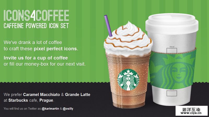 不同于其他网站,这个网站是一套名为“Icon4Coffee”的图标合集的官方站点,宣传语是“这是一套饱含咖啡因的图标集”,足以见得设计师是个资深咖啡控。如果你需要咖啡相关的图标,来这里就对了。