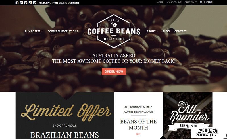 网站配色基本全是取自咖啡,黑白灰和棕色。黑色和白色一样,都能凸显内容,这也是为什么网站上那些食物是如此的醒目。作为餐饮类网站,这种配色似乎偏门了点,但是实际效果很不错哦。