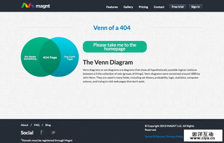 把一个因为错误而形成的页面设计的有趣而有创意很难,但不是不可能。设计出好的404页面需要你结合简约、实用,同时也少不了设计天分。