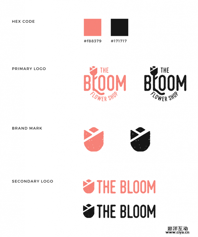 假想品牌“The Bloom”花店的品牌标注诞生过程。