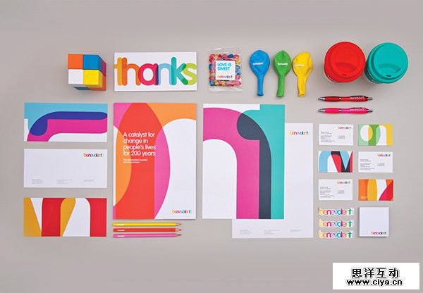 这些为Benevlolent Scociety的设计就是一个很好的例子,这些例子证实了许多元素都可以被应用于视觉品牌的构建,除了logo,还可以使用其他元素来形成视觉关注。