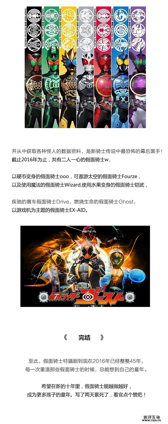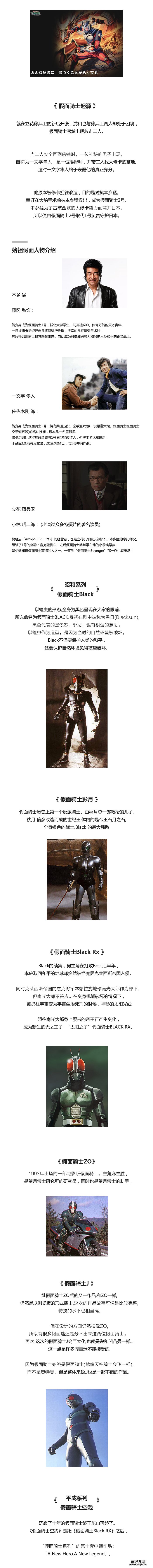 《假面骑士》是石森章太郎创作、东映株式会社制作的日本特摄系列英雄故事,至今共有32位主角骑士。