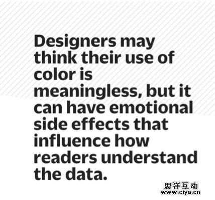 Stone 说,当针对数据可视化选择颜色的时候,一个需要铭记在心的关键点是一定要保证色彩与其代表的数据能产生的 “ 语义共鸣 ” 。简单来说,设计者们要时刻留心色彩与其用处之间的关系。