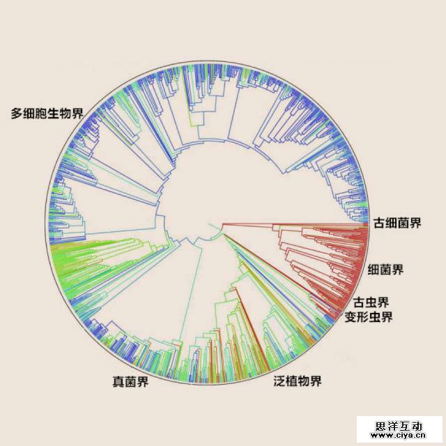 “生命之树”的图表通过运用对比强烈的颜色清晰地表达了大量的数据。(来自opentreeoflife.org)
