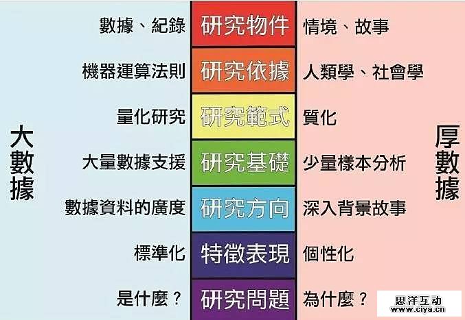 大数据与厚数据的研究方向差异比较表: