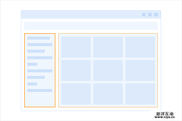 为了最大化的展示内容资源,我们的界面采用了扁平的两栏结构作为基础框架。