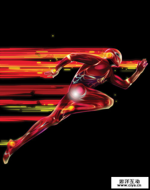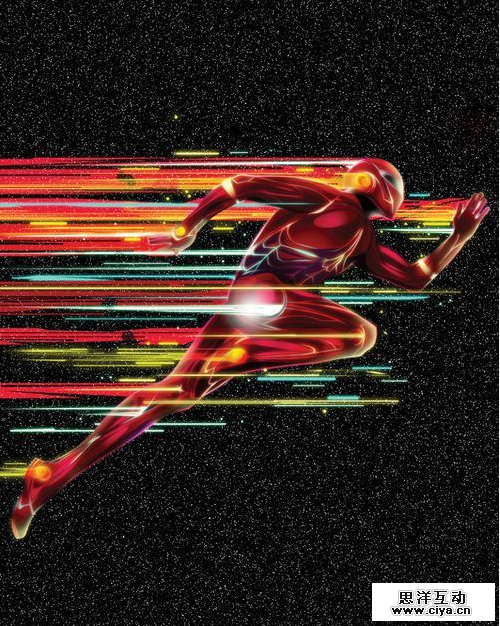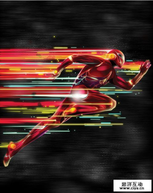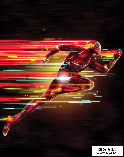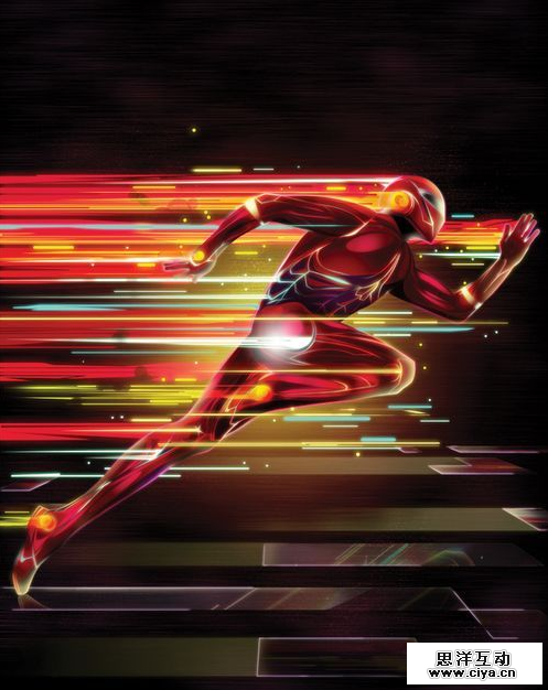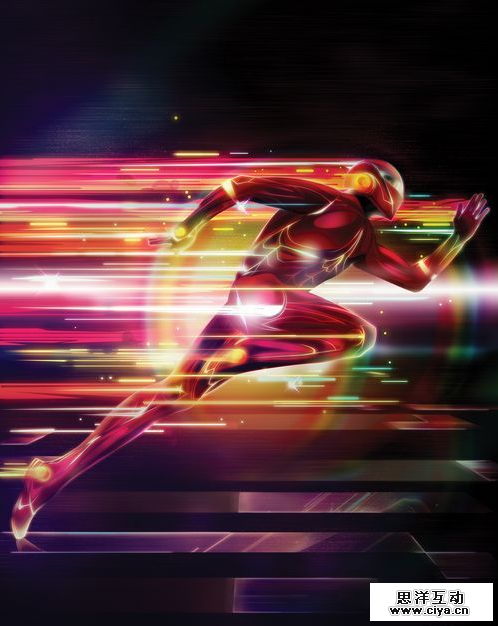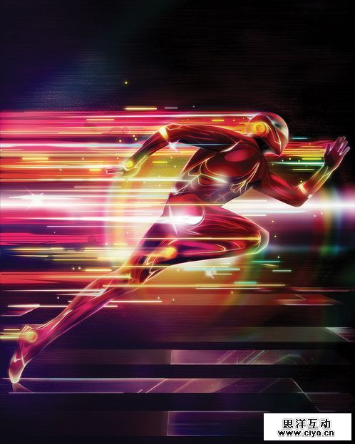 重复第九步和第十步,不过这次的横条间断更多、更细小,颜色方面选用跟超级英雄相似的黄色还有蓝绿色等。黄色横条绘制的效果如下图所示,就如街头的霓虹灯残影……