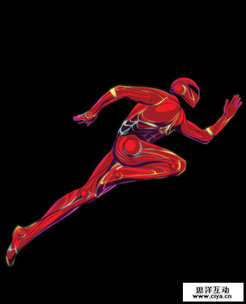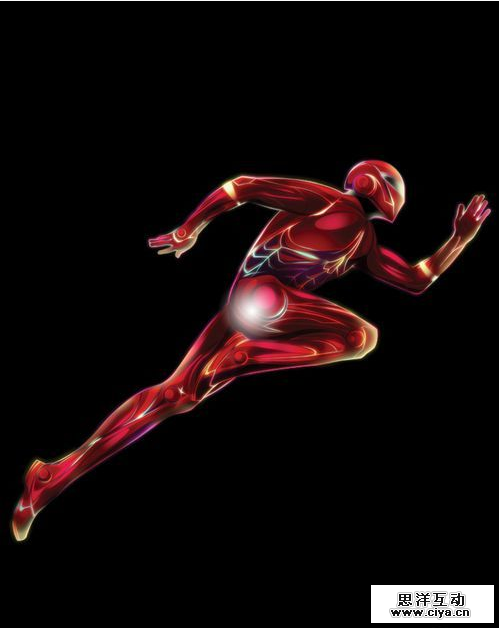 下面要为"figure"图层的超级英雄上色,执行"图层>新调整图层>渐变映射",渐变颜色设置为由黑到红,然后按Ctrl+Alt+G添加剪贴蒙版(图层面板右击选择创建剪贴蒙版同样可行)。效果图下图所示。