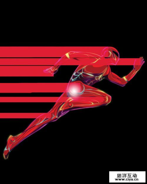 作品的主题是超级英雄在高速飞奔,所以下面就增加横向线条,以体现飞奔的"速度"。在选择矩形选框工具或者钢笔工具,描绘出矩形的横条,并填充为红色。效果如下图所示。