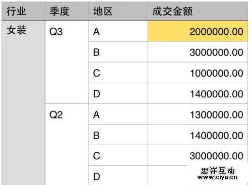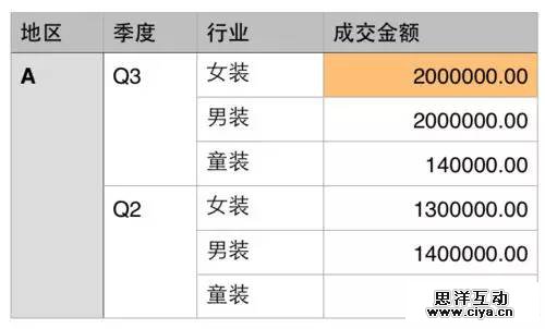 那如果是我要知道 B 地区女装行业四季度的成交总和呢?你怎么切给我?