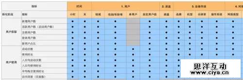 翻了自己的电脑半天,终于翻出一个不敏感的文档,供参考,下图就是移动数据分析中的需求交付模版之一:左侧列举度量,右侧标注出此度量需要看的维度,有时还会注明维度之间是否要交叉组合查询。不展开。