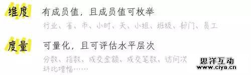 下面不卖关子了。有些人可能已经猜到了,我要分享的这两个词就是:维度+度量。