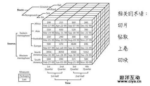 在网上找了一个包含了我刚才说的钻取、汇总的概念的立方体再给你们感受下,想要详细学习的同学可以搜索“数据立方体”继续研究。