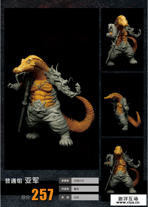 向后回望的造型很有魄力,让人感受到很强的气势。不论从何种角度观看都有亮点,感叹作者空间构成能力之高。毛发的表现也很好,与整体节奏相连。
