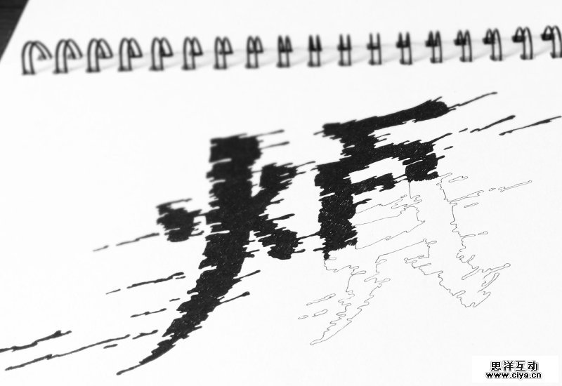 这种方法重点在于纸上的手绘,字体形式和细节上的变化和处理基本都在纸上完成,软件描摹则尽量地还原手绘稿的原貌,当然最后对于细节上的问题也要及时地加以修正。