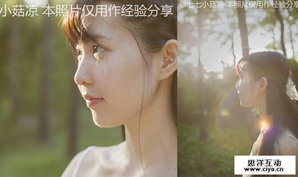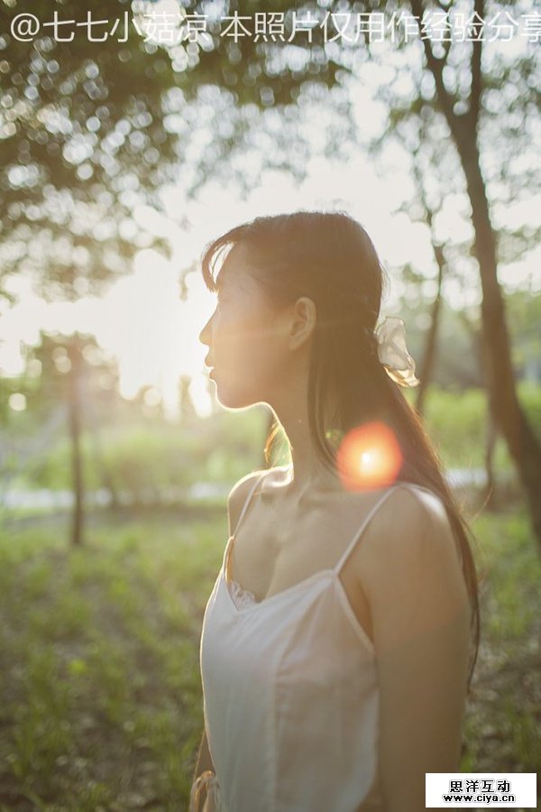 切记,光源在女友的哪个斜后方面,女友的脸就向哪面稍稍侧转,这是给面部进行自然补光。