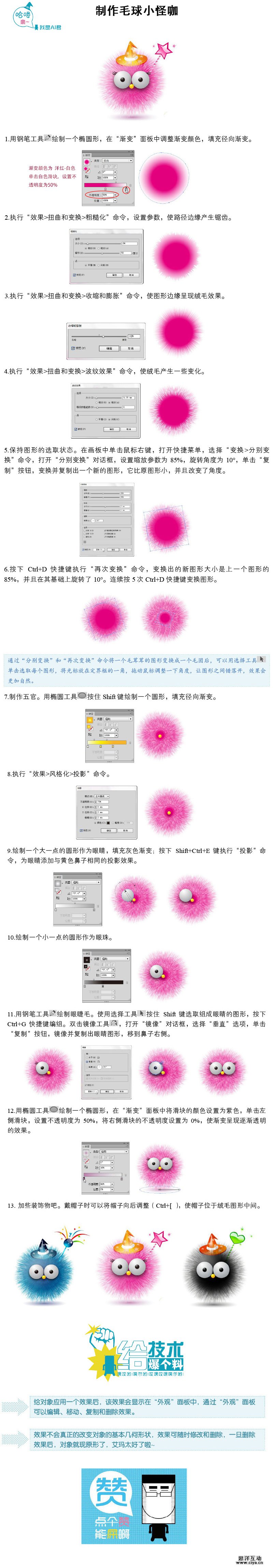 怎样用矢量图软件Illustrator表现毛茸茸的小动物呢?难道要一根一根的画吗?这可不是一个省时的好办法。今天,AI君教大家一个快速表现毛发的技巧吧~ 毛球小怪咖,走起~