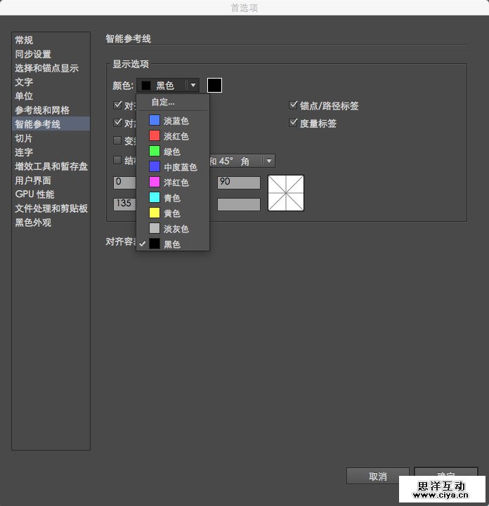 色彩的选择色彩总是友好的指南对应的层在层面板.在我看来它是非常重要的一个智能导游选择对比色.这可以做智能指南部分的设置对话框.