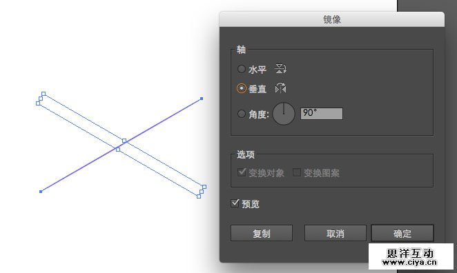 保持选择的路径,去对象>变换>对称.选择垂直轴,然后单击复制对话框.