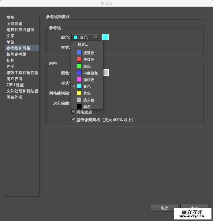 我想提醒你,你可以随时更改首选项对话框(Cmd/Ctrl+K)的指南和网格部分未被选中的参考线的颜色.