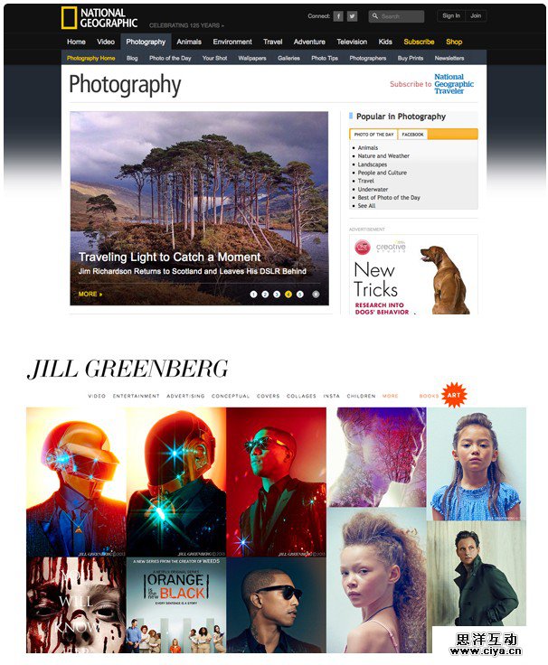 如果你有一张很棒的图片可以为一个项目服务,不要仅仅把它当成灵感来源,去真实的使用它吧。大力发展你的设计,并聚焦于这些优秀的图像。另一方面,如果你的手边没有任何图像,可以看一看摄影的世界寻找点想法。当你觉得自己遇到了一些设计障碍的时候,可以转而看看像国家地理、Jill Greenberg和LevonBiss这样的地方。(这些站点的设计主要就是围绕照片展开)