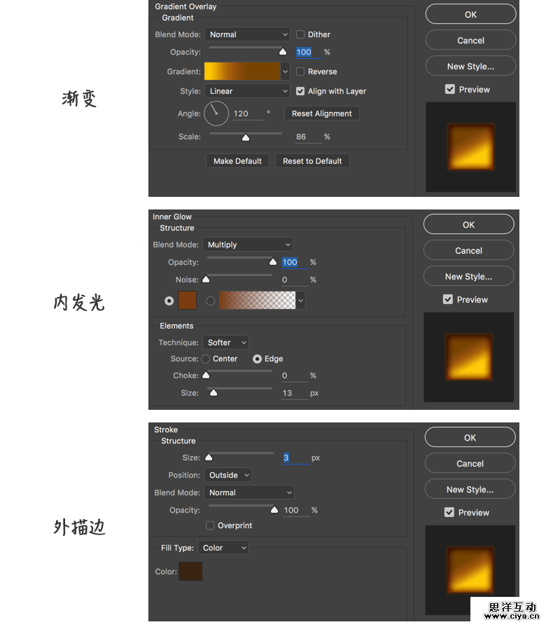 在图层面板,双击此图层执行“渐变填充”,设置如图: