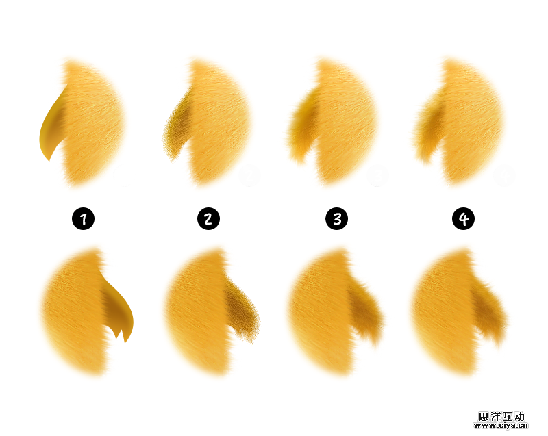 接下来要做边缘的小绒毛。运用“指尖涂抹工具”,并设置笔刷为我们刚才创建笔刷。耐心的将边缘顺着形状逐渐涂抹,这一步相当关键,一定要有耐心。 如下图: