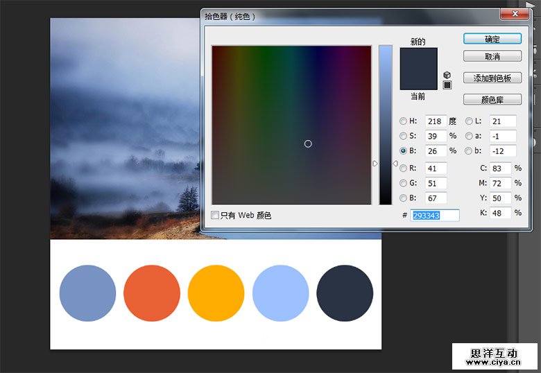 在PS里打开这张图片,吸取色彩。吸取色彩并不是任意选取自己喜欢的颜色就可以,根据整个图片的色彩分布,先找到图片的主色调。