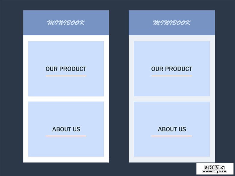 大多数时候,我们未必希望纯白色作为我们的底色调。要想让整体看起来优雅,添加一点透明度非常低的主色调作背景是必不可少的(右)。