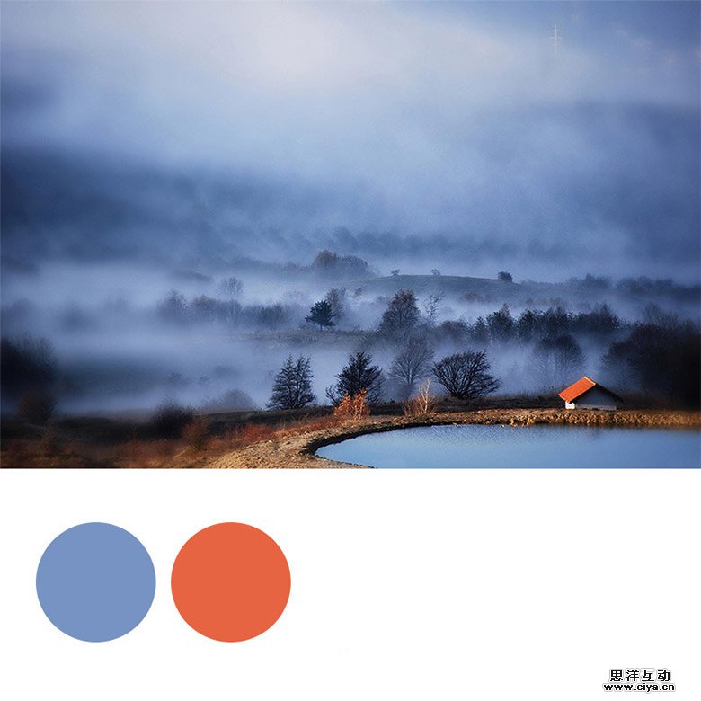 辅助色的选择 辅助色通常是一个能烘托、能与之产生呼应的颜色,如果主色调是一个冷色调,那么辅助色就偏向为一个暖色调。因为一张色彩丰富的图片必定是具备冷暖两种倾向的色彩,因此,你这时会在主色调的另外相反色温的色调上进行选择。