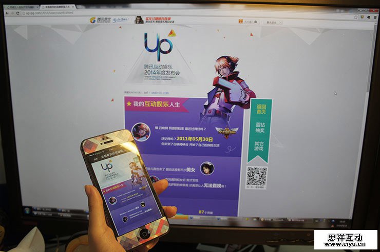 2. 根据浏览器尺寸然后进行动态的定位(http://up.qq.com/2014/await/ 手机输入网址浏览或扫描下排二维码)。