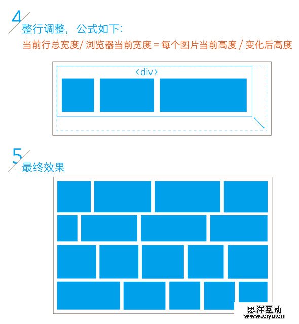 ③创造容器。每行建立一个div,并装入尽可能多的图片,直到容器装不下;