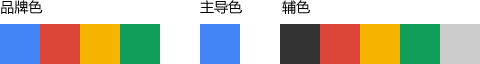 对于具有丰富产品线的谷歌来说,通过4种品牌色按照一定的纯度比,再用无色彩黑白灰能搭配出千变万化的配色方案,让品牌极具统一感。在大部分页面,蓝色会充当主导色,其他3色作辅色并设定不同的任务属性,黑白灰多作为辅助色,对于平台类站点来说,多色主导有非常好的延展性。