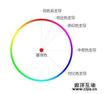 根据主色与辅色之间的色相差不同,可以分为以下各种类型: