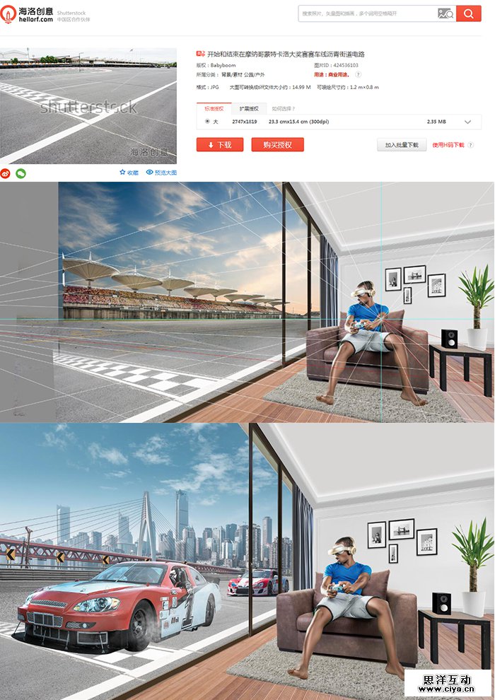 然后找车的素材,这里要特别注意的是,车必须得找成角透视的素材。
